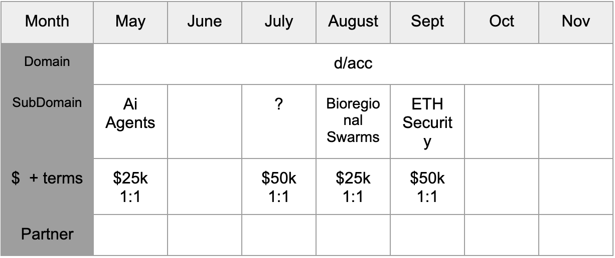 2026 domain focus as d/acc. We believe this is the current meta within the Ethereum ecosystem, and are focusing our efforts in 2026 to fund various verticals within this domain.