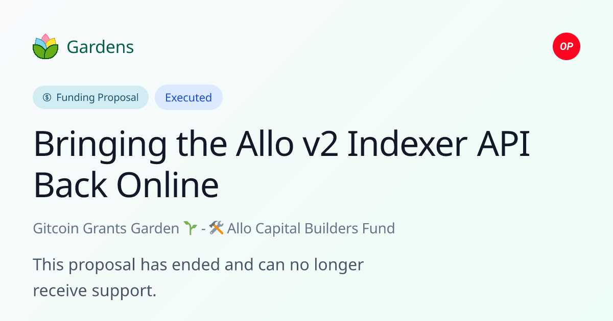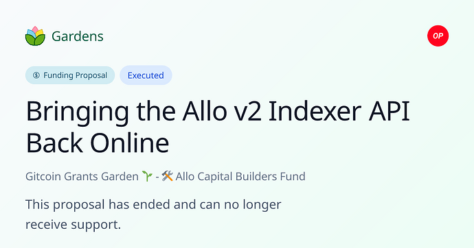 We need to reach a certain voting threshold in order to pass the vote and receive the funding. If anyone has the Allo Patron NFT holders, Giveth would love your support to bring the Allo v2 Indexer back online.